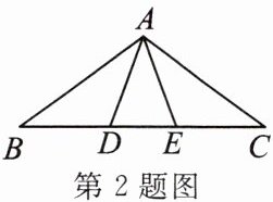 2. 如图,$\angle B= \angle C = 36^{\circ}$,$\angle ADE= \angle AED = 72^{\circ}$,则图中的等腰三角形的个数有(