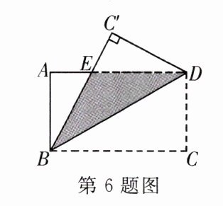 6. (教材第81页第2题变式)将一张长方形纸片$ABCD$按图中那样折叠。若$AE = 3$,$AB = 4$,$BE = 5$,则重叠部分的面积为(