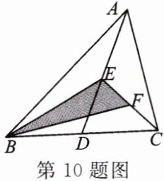 10. 如图,在△ABC 中,D,E,F 分别是 BC,AD,CE 的中点$,S_{△ABC} = 4 cm^2,$则$ S_{△BEF} $等于(