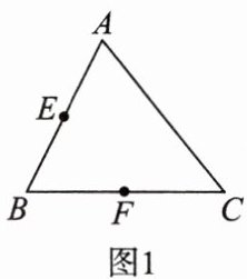 13. (1)如图 1,在△ABC 中,E,F 分别为 AB,BC 的中点,请仅用无刻度的直尺画出 AC 的中点 M;