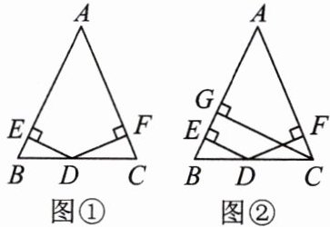 14. (核心素养·推理能力)已知在△ABC 中,AB = AC,D 是 BC 边上任意一点,过点 D 分别向 AB,AC 引垂线,垂足分别为 E,F。