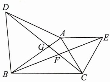 【对应训练】 如图,$ \triangle ABD $,$ \triangle AEC $ 都是等边三角形,$ CD $ 分别与 $ AB $,$ BE $ 交于点 $ G $,$ F $。