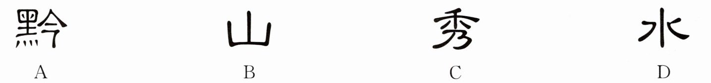 1.(贵州省中考)“黔山秀水”写成下列字体,可以看作是轴对称图形的是(
