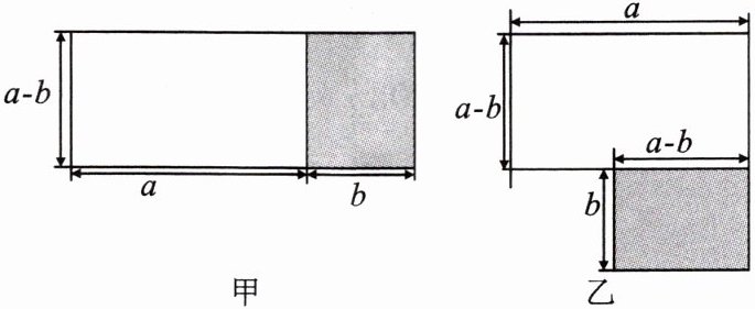 1. 将图甲中阴影部分的小长方形变换到图乙位置,你根据两个图形的面积关系得到的数学公式是