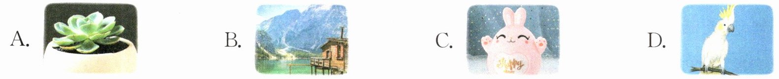 一、【选择心爱的物】亮亮找来四幅图片,其中不符合本次习作选材要求的是 ( )