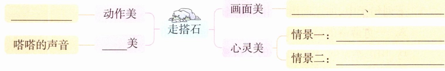 三、【品味搭石之美】走搭石的美好画面给大家留下了深刻印象,读课文片段,完成练习。