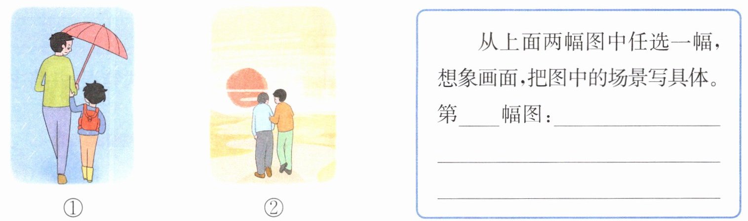 从上面两幅图中任选一幅,想象画面,把图中的场景写具体。