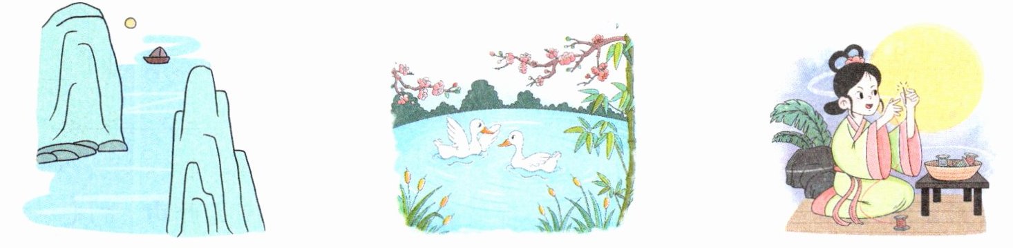 两岸青山相对出,孤帆一片日边来。 竹外桃花三两枝,春江水暖鸭先知。 家家乞巧望秋月,穿尽红丝几万条。