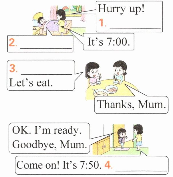 五、新趋势图片理解读句子,在图片下方用阿拉伯数字写出相应的时间点。