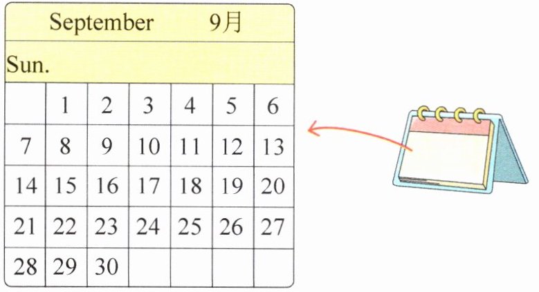 五、新趋势图片理解Nancy正在观察日历,请你帮助她写出所给日期对应的星期英文单词。