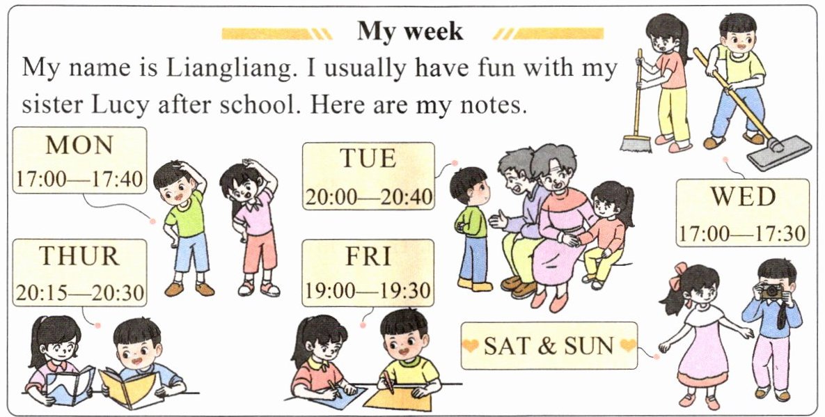 )2. Liangliang and Lucy do some reading on Tuesday evening.(