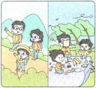 1. are making a snowman 2. flying kites 3. black clouds 4. flew away 5. lost his schoolbag