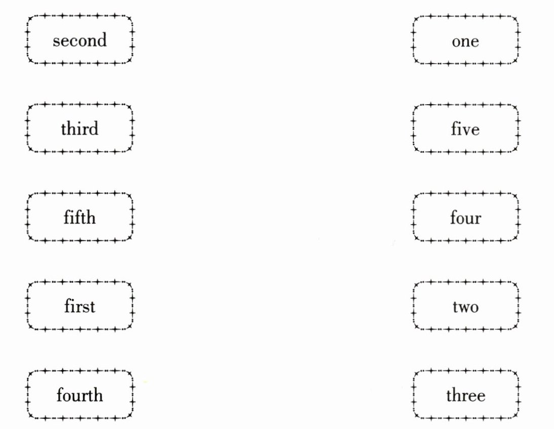 【答案】:second - two;third - three;fifth - five;first - one;fourth - four