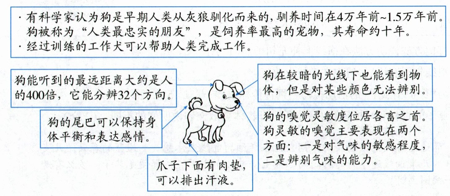 观察上图,然后结合资料向大家介绍“狗”这种动物。