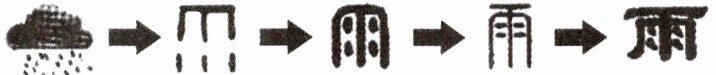 (1) 小语找到了下面有关“雨”字字形演变的图片,请你推断“雨”字的本义。(1分)