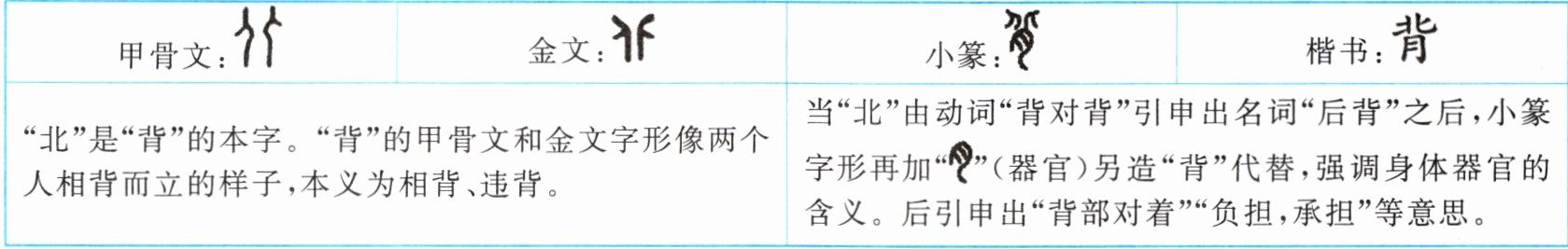 小语对“背”字的前世今生产生了兴趣,找来以下资料,请你一起探究。(6分)