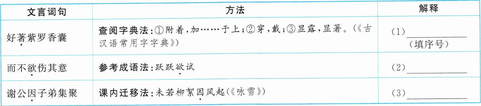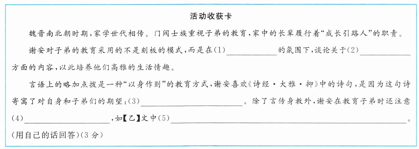 (5)(3分)谢对于谢玄的不良嗜好没有粗暴斥责,而是巧妙地运用打赌的方式获取香囊、手巾并烧毁,以此教育谢玄
