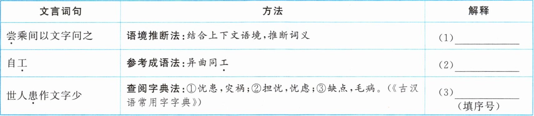 3. 参考表格提示的方法,解释加点词。(3 分)