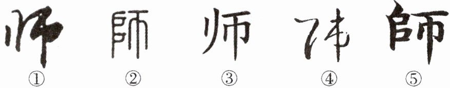 (3) 有同学提议在黑板上题写“吾爱吾师”四个大字,以表示对各位老师的真情告白,你喜欢下面五个“师”字中的哪一种写法?理由是什么?(3 分)
