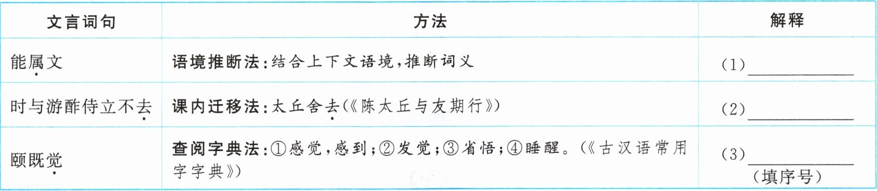 3. 参考表格提示的方法,解释加点词。(3 分)
