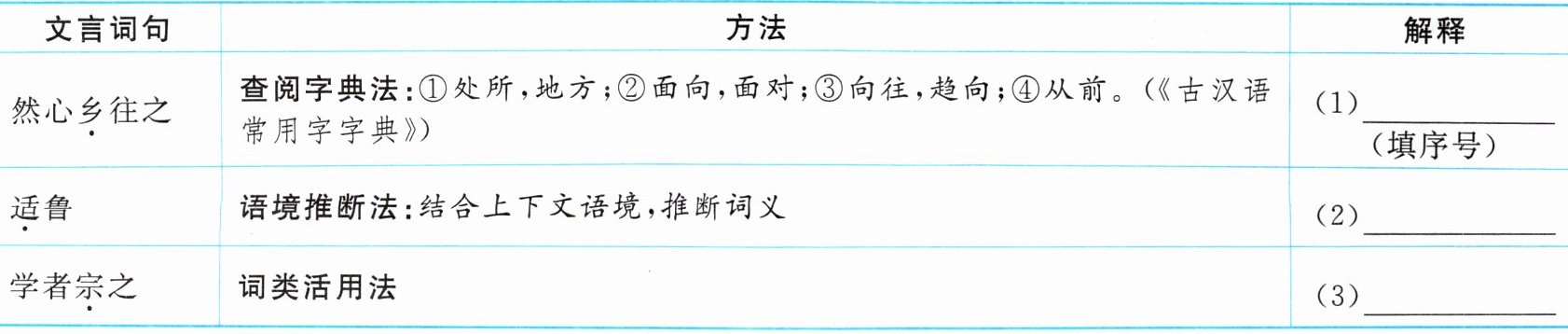 4. 参考表格提示的方法,解释加点词。(3 分)