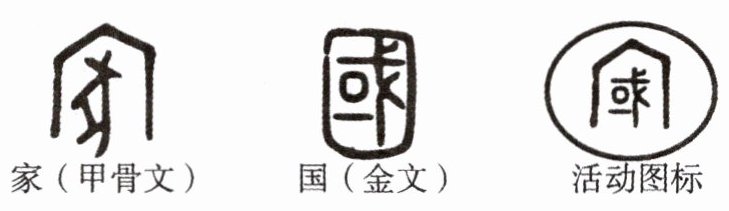 1. 小语根据“家”的甲骨文字形和“国”的金文字形,为本次活动设计了一个图标(如下图),请你简要分析其含义。(2 分)