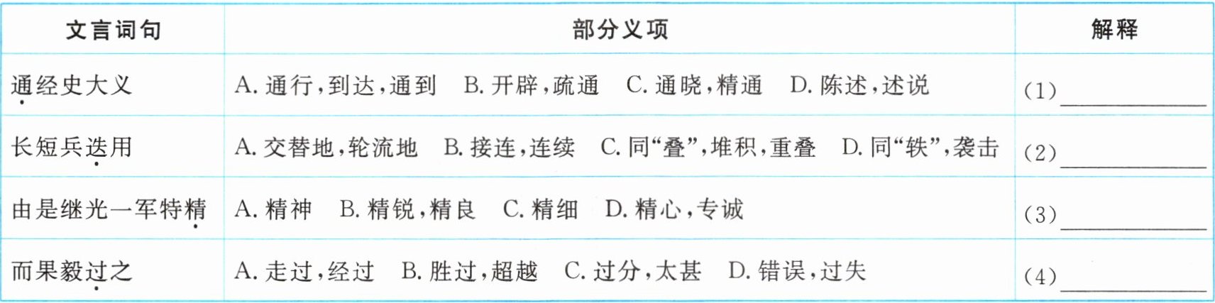 4. 根据《古汉语常用字字典》中的部分义项,给加点词选择正确的解释。(填字母)(4 分)