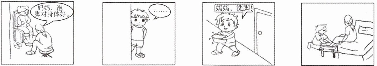 (3)“孝悌”是优良家风的重要内容。第三活动小组向同学们展示了一组图画,请用简洁的语言介绍图画的内容(不超过 30 字),并从教育方式的角度谈谈这组图画给人们的启示。(4 分)