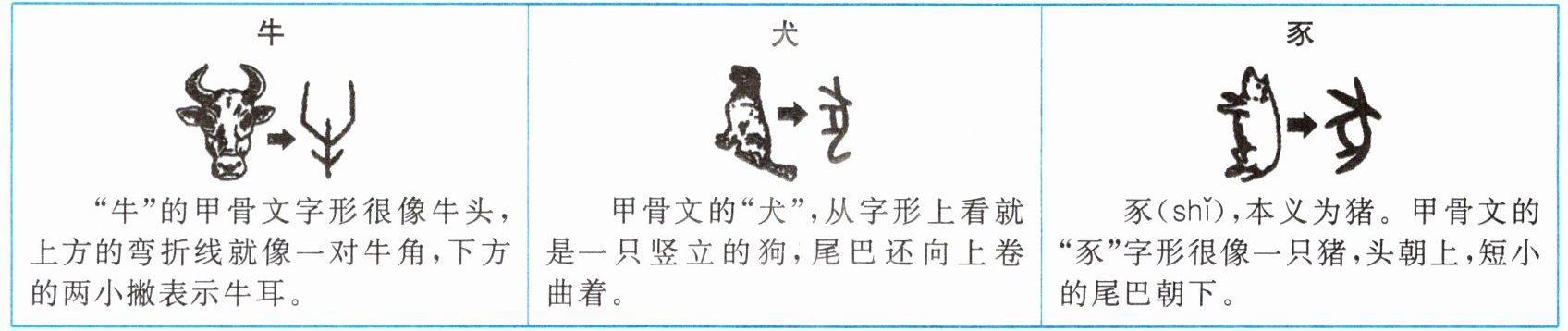 小语:“牛”“犬”“豕”均在六畜之列,是人类很早就开始驯养的动物。从以上汉字卡片可以推测出,这几个字都是(1)