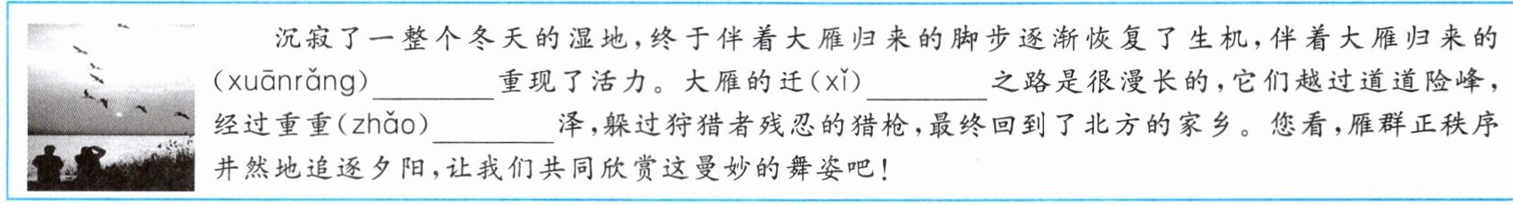 1. 根据拼音写出相应的汉字,完成配文。(3分)