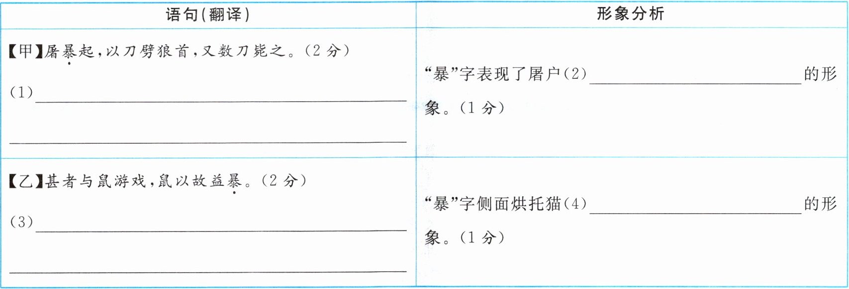 9. 请从“暴”字入手,分析屠户和猫的形象。(6 分)