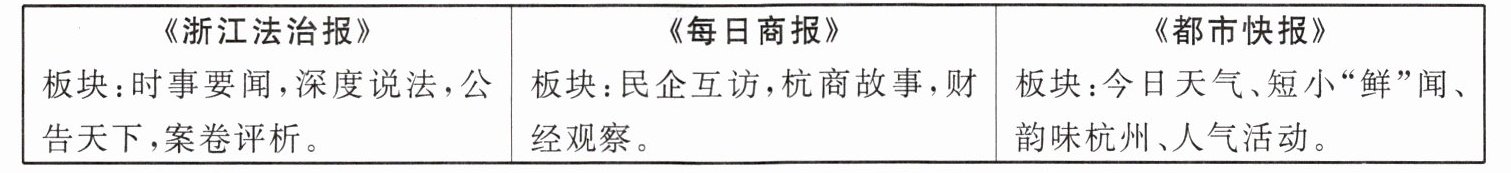 4.(4分)示例:我认为投给《都市快报》采用率更高。理由:这篇新闻写的是杭城桂花开了,杭州人或赏花、或摇花,或把桂花做成各种吃食,促进杭州经济的发展。“韵味杭州”说的是杭州的情趣、风味,与新闻非常吻合。(选择《每日商报》或《都市快报》均可。选择报刊+结合内容+结合报刊特点+说明理由,理由充实、表述合理即可)