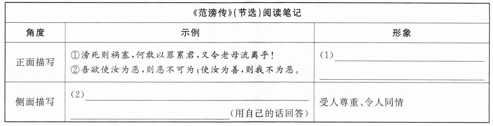 6. 小文读了本文后,就范滂这一人物形象做了阅读笔记。请你帮助她将其补充完整。(6 分)