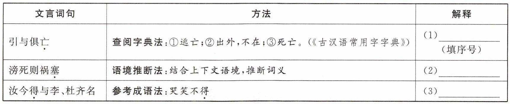 4. 参考表格提示的方法,解释加点词。(3 分)