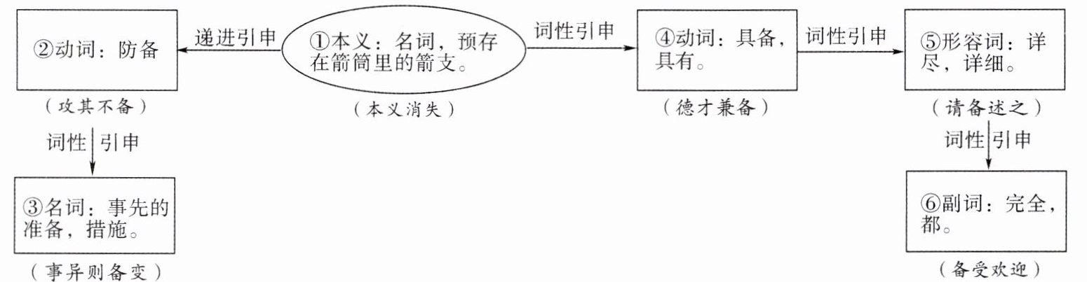 (2)结合下面“备”字的引申线索图可知,语段画横线句子中的“备”的意思是。(填序号)(1 分)