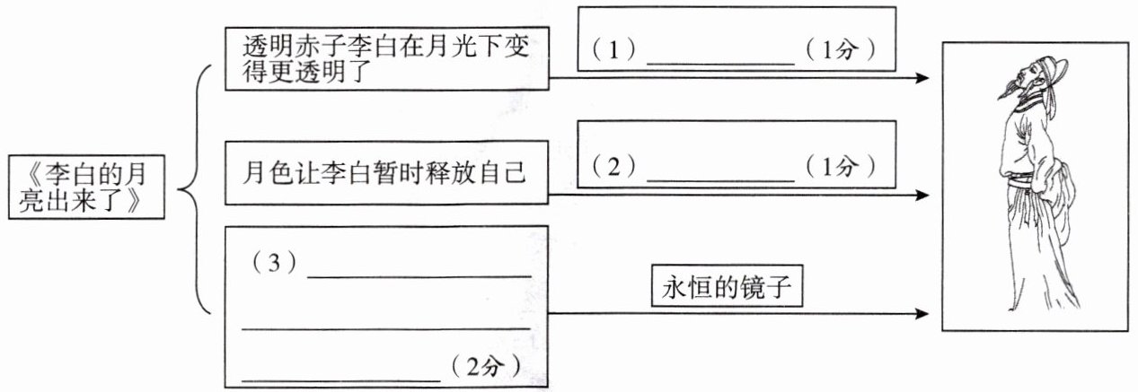 (3)(2分)唯有明月能让李白重新接近自己(或:李白不自觉地在心里藏下了一面永恒的镜子,这镜子就是明月)