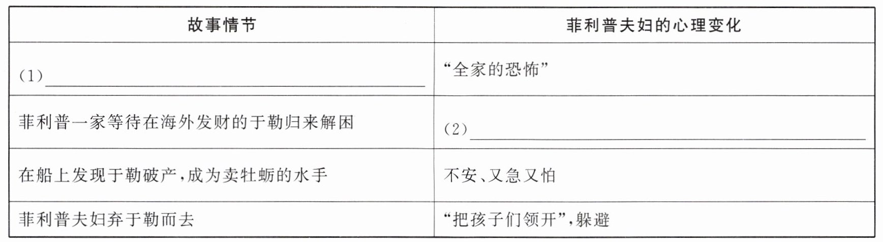 3.梳理课文的故事情节以及相对应的菲利普夫妇的心理变化,完成下面的表格。(2分)