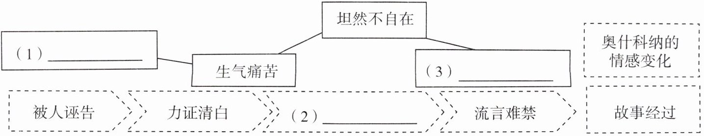 6.奥什科纳捡到绳子后经历了什么?请结合本文内容,完成下面的思维导图。(3分)