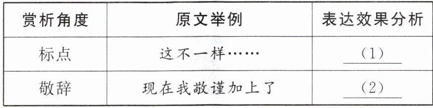 5. 根据下面表格中所给的赏析角度,分析语言的表达效果。(6 分)
