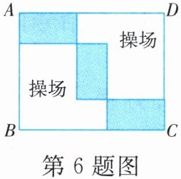 6. 如图为某区正在修建的一所学校的示意图,该学校的占地是一个长方形,长 AD 为 112 米、宽 AB 为 74 米。计划在三块形状及大小相同的长方形空地(阴影部分)修建教学楼,将剩余两块形状及大小相同的空地作为操场,求每个操场的面积。