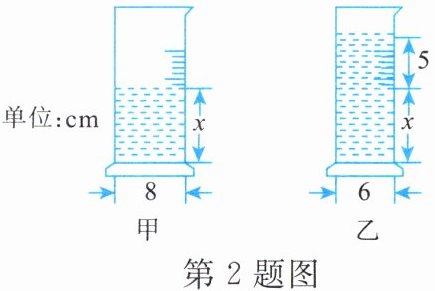2. 如图,将甲量筒中的液体全部倒入空量筒乙中,液体的高度比原来增加了 5 cm。根据题意,可列方程为 (