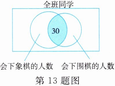 13. 某中学七年级一班有50名同学,有2人象棋、围棋都不会下,有30人象棋、围棋都会下,且会下象棋的学生比会下围棋的学生多6人。