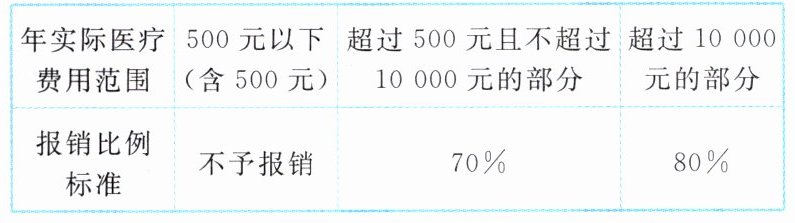 元。(2) 设某农民一年的实际医疗费用为x元(500<x≤10000),则按标准报销的金额为