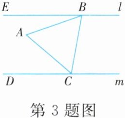 3. 如图,直线l//m,等边三角形ABC的两个顶点B,C分别落在直线l,m上。若∠ABE=21°,则∠ACD的度数为 (
