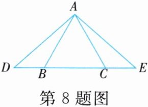 8. 如图,△ABC是等边三角形,点D,E在直线BC上,DB=EC。求证:∠D=∠E。