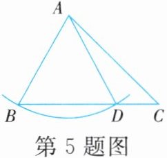 5. 如图,在△ABC中,以点A为圆心,线段AB的长为半径画弧,交BC于点D,连结AD。若∠ABD=55°,则∠ADC=