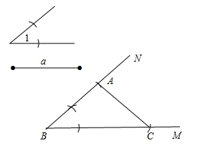 7. 如图,已知线段a和∠1,用直尺和圆规作等腰三角形ABC,使AB=AC=a,∠B=∠1(保留作图痕迹,不写作法)。
