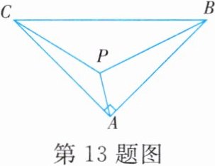 13.[推理能力]如图,在等腰直角三角形ABC中,$∠BAC=90^{\circ }$,P是$\triangle ABC$内一点,$PA=$$1,PB=3,PC=\sqrt {7}$。求$∠CPA$的度数。