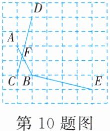 10. 如图,在正方形方格中,每个小正方形的边长都是一个单位,点A,B,C,D,E均在小正方形方格的顶点上,线段AB,CD相交于点F。若$∠CFB=\alpha $,则$∠ABE$为 (