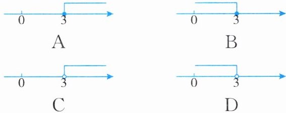 9. 已知|3-a|=a-3,则a的取值范围在数轴上表示正确的是 (